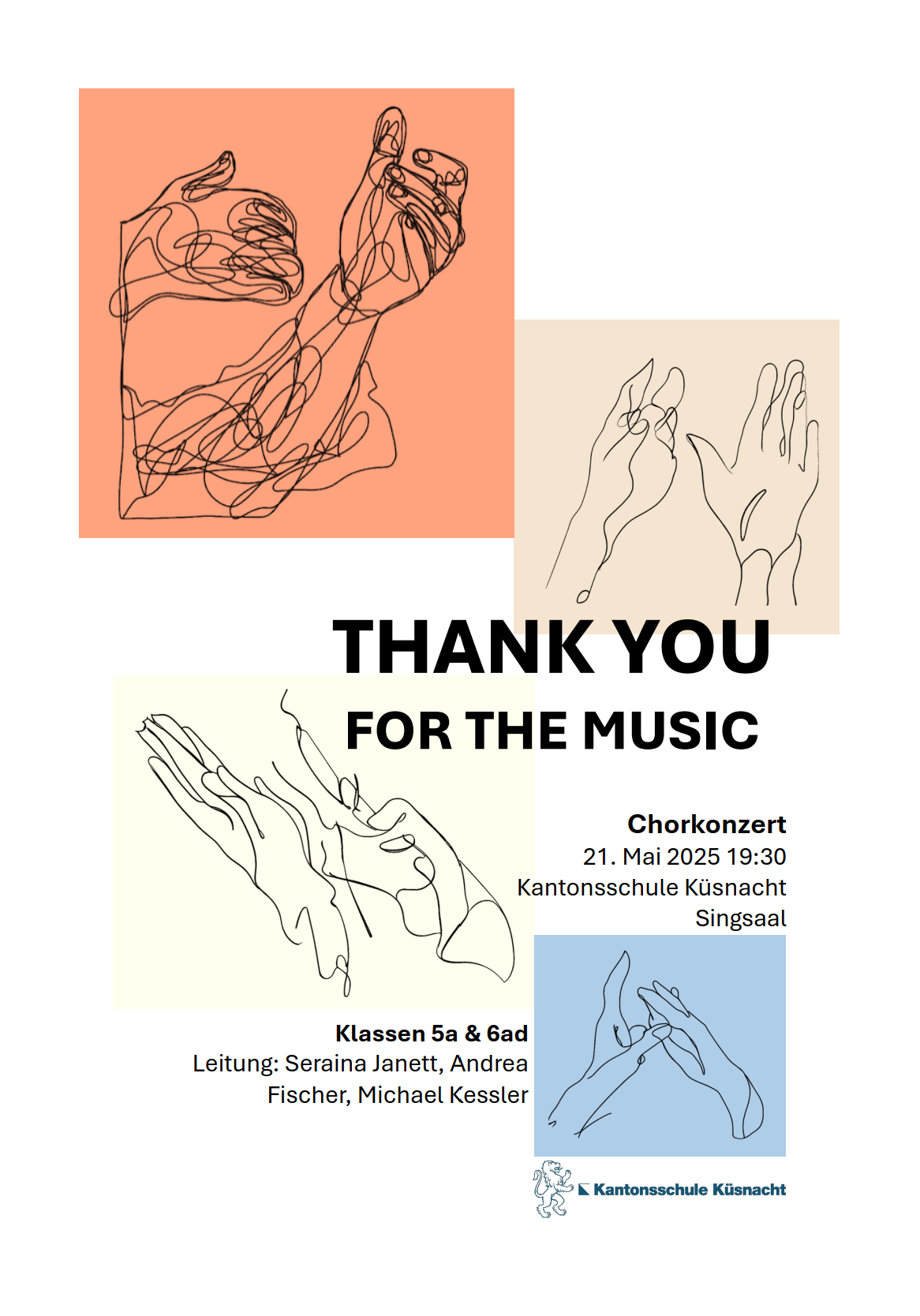 Wir laden herzlich ein zum Chorkonzert unserer Musikklassen 5a, 6a und 6d im Singsaal. Verantwortlich: Seraina Janett, Andrea Fischer, Michael Kessler