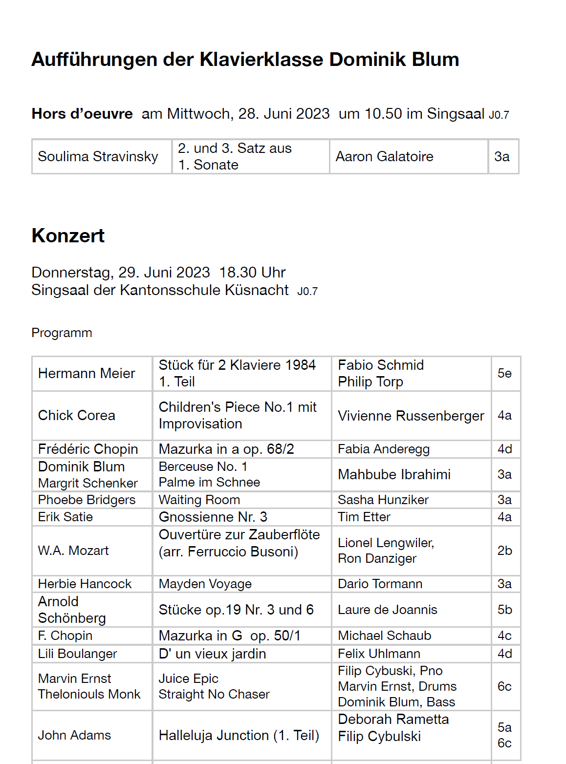 Konzert der Schüler*innen von Dominik Blum (Klavier)